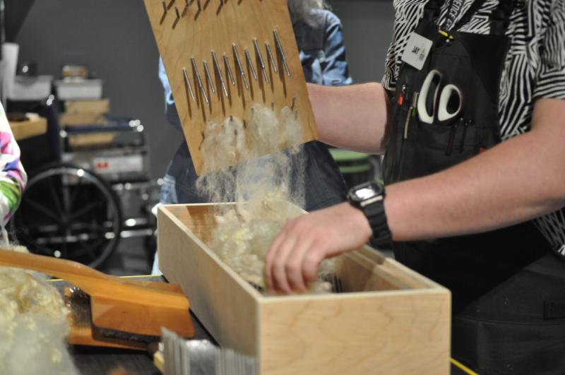 Want to learn more about natural fibers and wool? In this class, students will learn about plant and animal fibers and their attributes by examining their physical properties and processing those fibers from their raw form. We will examine a variety of fiber and wool breed samples and will discuss what we observe visually and tactilely and what attributes result from those observations. We will continue our observations and discussion while physically processing raw materials, walking through the various stages of processing wool – skirting, scouring (where we’ll talk about lanolin), picking, and carding (where we’ll talk about differences in yarn attributes that result from different methods of preparation).